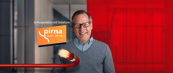 Im Rahmen der Vorvermarktungsphase wird bei Abschluss eines Grundstücknutzungsvertrags (GNV) bis zum 30. November 2020 Gebäude durch die Gemeinde Pirna kostenlos ans Glasfasernetz angeschlossen. Einzelheiten sind dem Grundstücknutzungsvertrag (GNV) der Gemeinde Pirna zu entnehmen. Nach Ablauf der Vorvermarktungsphase ab dem 30. November 2020 kostet der Anschluss Ihres Gebäudes ans Glasfasernetz bis zu 2.100,84 Euro (exkl. MwSt.). Beim Ausbau wird ein Glasfaser-Hausübergabepunkt in Ihrem Gebäude installiert. Der Anschluss ans Glasfasernetz ist die Voraussetzung für einen Vodafone-Glasfaser-Vertrag. - Alle Preise zzgl. gesetzl. USt. Gilt nur für Unternehmen in definierten Gebieten. Ausbau und Realisierung vorbehaltlich wirtschaftl. Prüfung vorliegender Aufträge bei Fristablauf. Aktionszeitraum vom 1. September bis zum 30. November 2020 (vorbehaltlich Verlängerung).