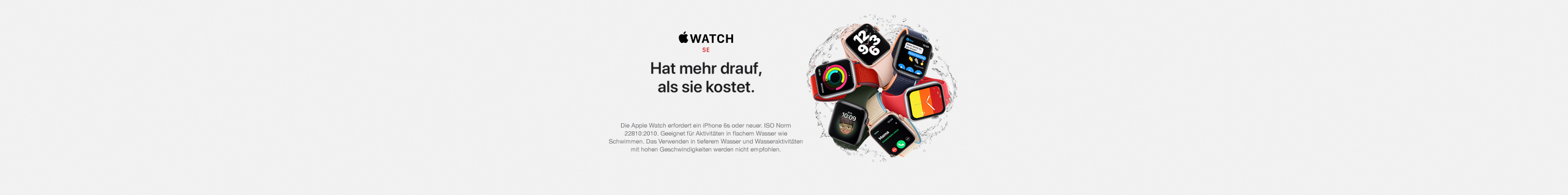 - Die Apple Watch Series 6, die Apple Watch SE und die Apple Watch Series 3 sind nach ISO Norm 22810:2010 wassergeschützt bis 50 m. Das bedeutet, sie sind für Aktivitäten in flachem Wasser wie Schwimmen in einem Pool oder im Meer geeignet. Sie sollten aber nicht beim Sporttauchen, Wasserski oder bei anderen Wasseraktivitäten mit hohen Geschwindigkeiten oder in tieferem Wasser verwendet werden.