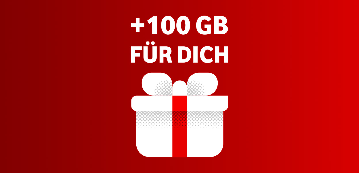 - Als Vodafone Mobilfunk-Kund:in in einem Tarif mit begrenztem Datenvolumen bekommst Du einmal kostenlos zusätzlich 100 GB im deutschen Vodafone-Netz. Das gilt für folgende Tarife mit begrenztem Datenvolumen im Tarifportfolio CallYa: Start, Allnet Flat S, Allnet Flat M, Allnet Flat L, Jahrespaket XS, Jahrespaket M und Jahrespaket XL. Der Tarif muss zum Zeitpunkt der Buchung aktiv sein und der monatliche Basispreis muss abgebucht worden sein. Du kannst die zusätzlichen 100 GB nach Aktivierung 28 Tage bis einschließlich 27.4.2026 nutzen. Davon nicht genutztes Datenvolumen verfällt nach dem 27.4.2026. Du kannst das Datenvolumen innerhalb Deutschlands und der EU nutzen. Buchbar ist das Datenvolumen über die MeinVodafone-App bis einschließlich 31.3.2026.