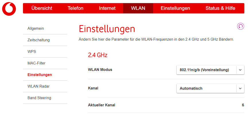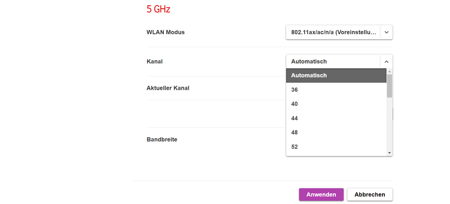 Wähl unter 2,4 GHz oder 5 GHz im Ausklappmenü Kanal einen Kanal aus.