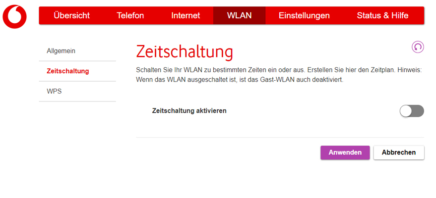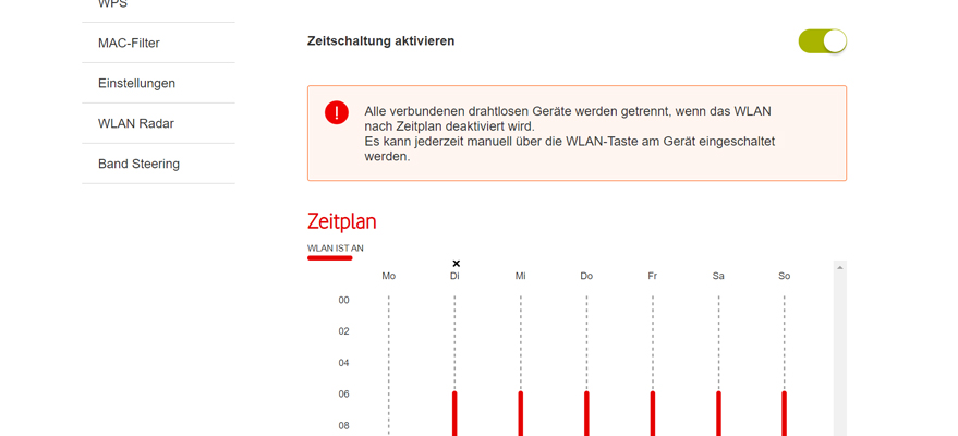 WLAN ist gemäß Zeitplan ausgeschaltet und wird automatisch wieder eingeschaltet