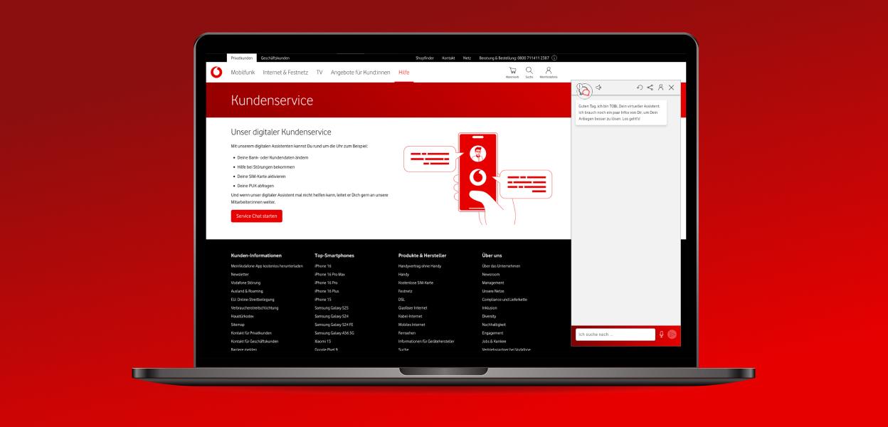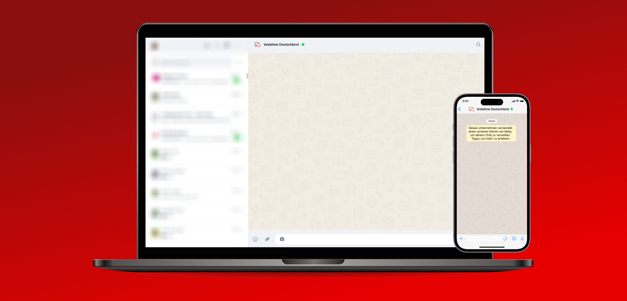 Du findest den Service Chat in der MeinVodafone-App, im Web oder über WhatsApp
