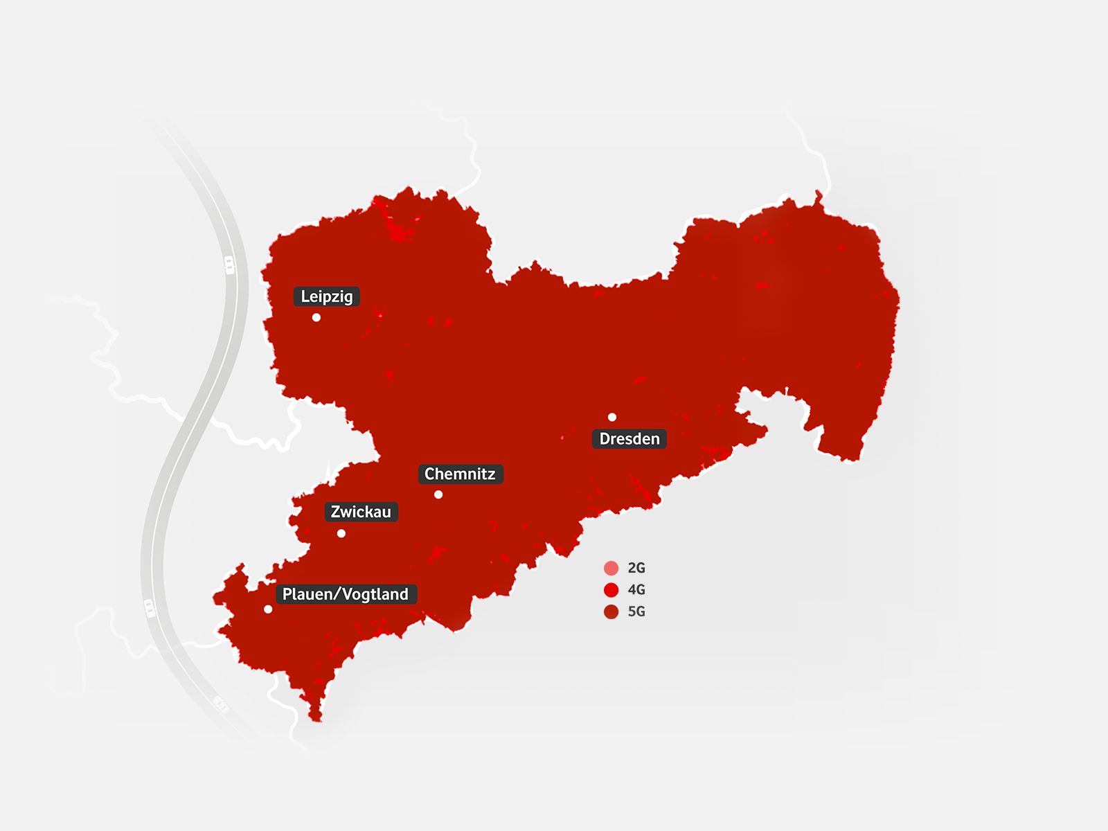 In Dresden, Leipzig und den Orten Grimma, Hainichen, Klipphausen, Nossen, Pirna, Pockau-Lengenfeld und Schwarzenberg treibt Vodafone den Ausbau von Glasfaser voran und ermöglicht damit ca. 33.000 Haushalten den Anschluss an die zukunftssichere Glasfaser-Technologie. In Dresden fördert der Bund den Ausbau von Glasfaser mit dem so genannten Wirtschaftslückenmodell. Damit wird Vodafone 3.000 Haushalten und Unternehmen den Zugang zum Glasfasernetz bieten - und zusätzlich 3.000 Haushalte und Unternehmen eigenwirtschaftlich anschließen.