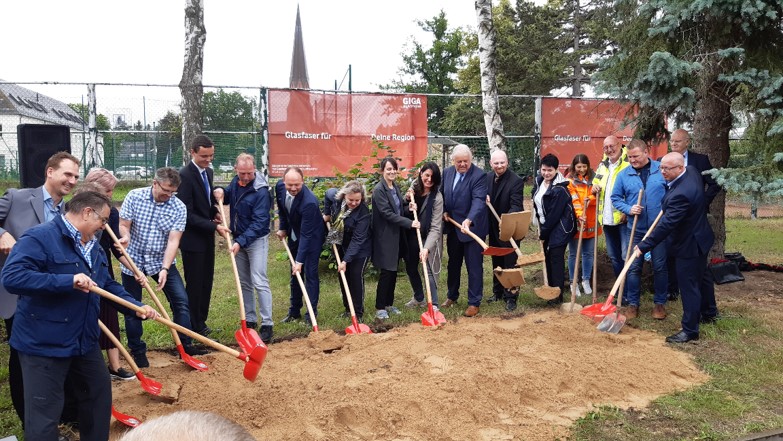 Am 1. Juli 2021 haben wir den Ausbau des Glasfasernetzes mit einem symbolischen Spatenstich eingeläutet. Dieser fand am Standort des neuen POP Gebäudes im Bereich des Tennisplatzes an der Gerichtsstraße statt.