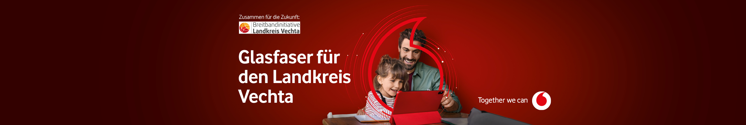 Der Landkreis Vechta und Vodafone bringen die digitale Zukunft: das supermoderne und ultraschnelle Glasfasernetz. Bis zu 1.000 Mbit/s schnell und ausfallsicher. Egal, wie viele Geräte gleichzeitig angeschlossen sind und welche Datenmengen heruntergeladen werden.